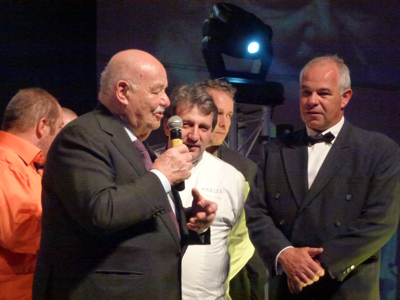 Le Président de Sieurs D’Arques Pierre Mirc au micro était honoré ce soir pour sa dernière année à la tête de l’opération » Toques & Clochers « , 24 ans qu’il menait la destinée de ces Caves prestigieuses et organisait avec son équipe cette grande fête. Très proche des chefs, il a su au fil des ans créer un évènement unique au monde.