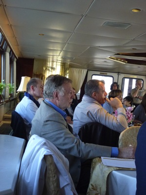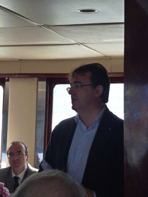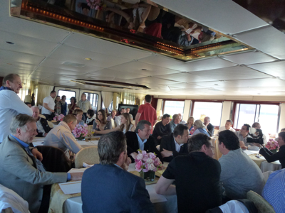 La centaine de participants à ce voyage des chefs se retrouvent donc au pont inférieur du bateau pour entamer une réunion studieuse, mais heureusement très courte. Le Président Jaume Tapiès en appelle à toutes les bonnes volontés et aux chefs qui le désirent à s’investir dans ces voyages gastronomiques où les chefs vont porter, loin de leurs attaches, leur savoir-faire culinaire. Toutes les idées sont bonnes à prendre et pour les prochains évènements des Grands Chefs Relais & Châteaux, il est déjà nécessaire de réfléchir à la prochaine destination… Certains noms de villes fusent, Shanghai et Hong Kong sont cités… pourquoi pas… nous, au Jardin des Sens, on adhère à l’idée !