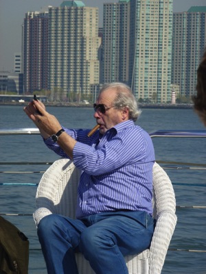 Le Chef Marc Meneau savoure une pose face à Manhattan.