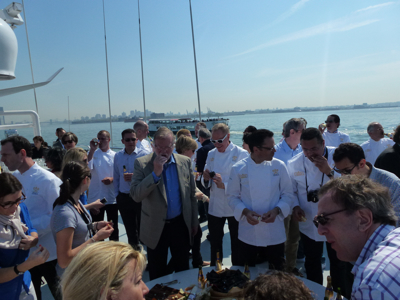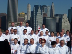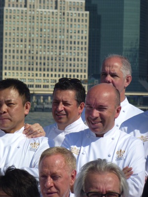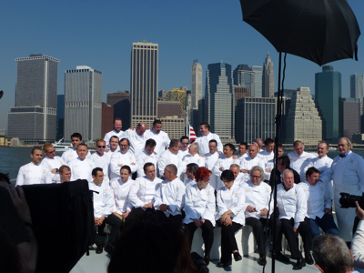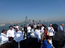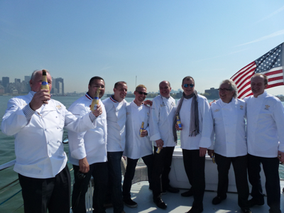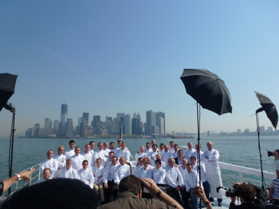 Lundi matin, départ de l’ensemble des chefs Relais & Châteaux pour une croisière de quelques heures sur l’Hudson… La Croisière des Chefs s’amuse ? Non, pas du tout, la matinée commence par une réunion des membres de la chaîne, pour suivre après par une photo de tous les chefs au pied de NY pour le magazine Paris Match qui sortira dans quelques jours.