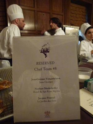 L’équipe numéro 8 était composée de Jean-Georges Vongerichten du restaurant Jean-Georges, Norbert Niederkofler de l’hôtel & Spa Roca Alpina et de Jacques Pourcel du Jardin des Sens.