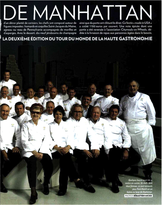 Le magazine Paris Match avait suivi les Relais & Châteaux sur le Hudson River accompagné des 45 Grands Chefs pour la photo souvenir devant les tours de Manhattan. L’article est donc sorti cette semaine. Vous retrouverez l’ensemble des chefs réunis ce jour-là, sous le soleil de New York.