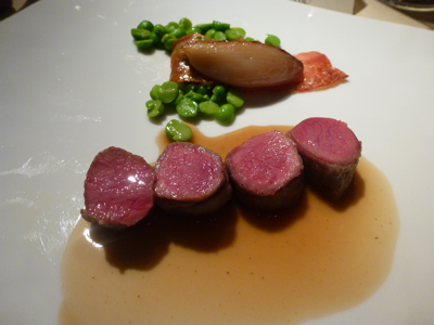 Filet d’agneau meunière, petit pois à la française, jus d‘agneau fumé.