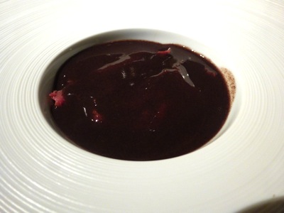 Escalope de suprême de pigeonneau, sauce salmis au Syrah.