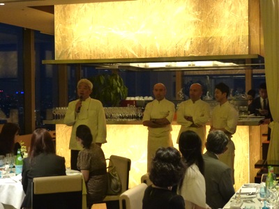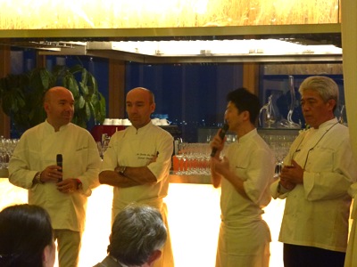 C’est le Chef Hiramatsu qui est venu lui même célébrer l’accueil des frères Pourcel pour cette fête des dix ans, Monsieur Hiramatsu est propriétaire de 28 restaurants au Japon et Président du groupe éponyme côté en bourse à Tokyo, un des plus important groupe de restauration au Japon. En 2002 il a eu l’idée de s’entourer de chefs français pour développer ses activités, il a commencé par les frères Pourcel, avant de s’appuyer sur le savoir faire de Paul Bocuse, puis de Marc Haeberlin. Kotaro Hasegawa le chef du restaurant des frères Pourcel était également présent pour évoquer son travail durant 10 ans auprès des deux frères.
