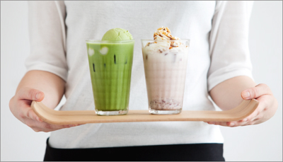 Très tendance aussi en ce moment les concepts dédiés à un mono-produit, comme par exemple le Green Tea ( thé vert matcha ), on a vu se développer pas mal de concepts de shop esprit snack autour du thé vert.
