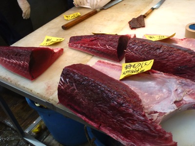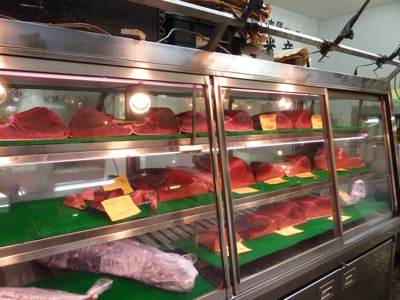 Certains morceaux de thon rouge se vendent des fortunes, plusieurs spécialistes affichent leurs médailles de spécialiste des découpes, les origines des pièces de thons… ici le marché du thon est très contrôlé et réputé sûr !