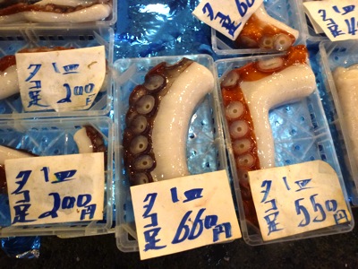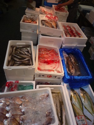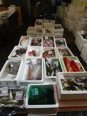 Ce qui nous intéresse le plus ce sont les étals de poissons présentant la pêche du jour, un peu comme sur les marché de la Méditerranée, on y trouve de petits merveilles de poissons pêchées à proximité des côtes Japonaises.