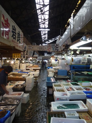 Le marché « Jogai Market « est particulièrement pittoresque. C’est le plus grand marché de poissons frais au monde : on y trouve homards, huîtres, tortues marines, baleine et thon. Les Japonais l’appellent aussi le marché de Tsukiji. Il est composé de deux parties : l’une à l’intérieur où ont lieu les ventes aux enchères et l’autre à l’extérieur avec des boutiques et des restaurants.