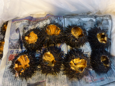 Des oursins frais tout juste ouvert qui se vendent plus de 5 euros pièces.