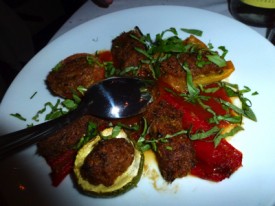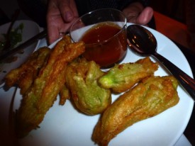 Côté cuisine, nous avons été totalement sous le charme. Pour commencer, une pissaladière d’anthologie, ensuite des artichauts justes poêlés qui accompagnent une salade de tomate et un burrata à tomber par terre, des beignets de fleurs de courgettes mémorables, pour suivre des gambas grillées arrosées d’huile d’olive et recouverts de basilic frais, viendront ensuite des calamars à la romaine tendres et goûteux, des légumes farcis traditionnels, puis des pâtes aux truffes… du goût, de la très bonne huile d’olive et des produits remarquables… le principe est là, entre cuisine niçoise, Riviera, et Italie… pas besoin de plus… que du bon !