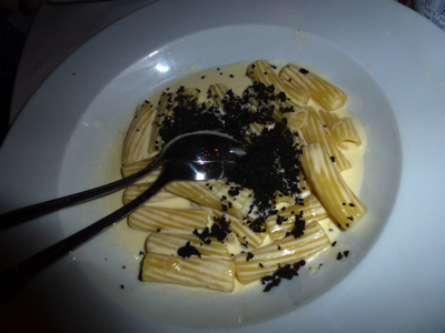 Ici, le client est Roi, mais seulement dans une mesure raisonnable. Nombreuses sont les anecdotes qui courent sur la » Patronne » et son mauvais caractère… et bien pour nous, ce fut un moment délicieux… Salle comble, par ici, une table avec des journalistes politiques célèbres et une personnalité politique, par là, un journaliste gastronomique, un peu plus loin, une table d’étrangers visiblement venus du festival de Cannes pour prolonger la fête… enfin beautiful people et clients complètement sous le charme de l’établissement et puis ceux qui n’aiment pas n’ont qu’à partir !