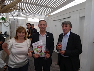 Un petit discours réalisé par la rédactrice en chef du magazine Sylvie Tonnaire, accompagné de Yannis Kherachi le chef sommelier du restaurant le Jardin des Sens qui s’exprima sur l’attachement des Pourcel et de leur associé Olivier Chateau aux vignerons de la région et à la promotion des vins du Languedoc à l’étranger.