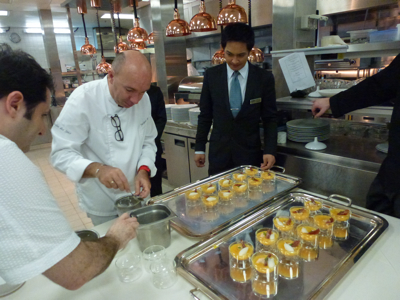 Les trois chefs iront à la rencontre des nombreux chefs qui ont dîné lors des deux repas au » Tasting Room « , ci-dessus l’équipe des fournisseurs de truffes » Plantin « , mais aussi et entres autres, le chef Laurent Varachaud chef de l’hôtel Regent à Singapour, le chef Frédéric Chabert du restaurant Pétrus à Hong Kong, le chef Vincent Thierry du restaurant Caprice à Hong Kong, le chef Francky Semblat du Restaurant Joël Robuchon à Macau.