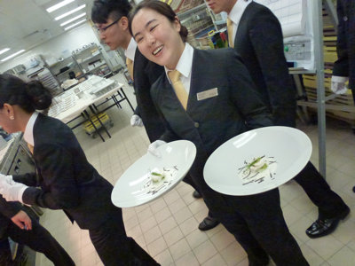 Les jeunes Chinois se passionnent pour les métiers de la restauration, ils sont toujours impressionnés lorsqu’ils travaillent avec des Grands Chefs étrangers, que ce soit en salle ou en cuisine, ils trouvent une vraie motivation à exercer la cuisine française.