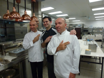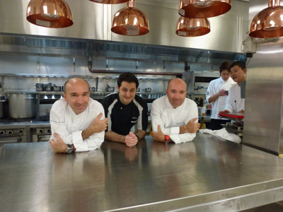 Les jumeaux Pourcel ont laissé pour quelques jours leur table de Montpellier Le Jardin des Sens pour faire partager leur savoir-faire aux équipes chinoises du » Tasting Room « , et régaler les clients chinois de passage à Macau. L’occasion pour eux de rencontrer pas mal de chefs de la région et de pouvoir échanger leurs expériences, leurs connaissances du marché de Hong Kong et Macau, ainsi que de connaître un peu l’évolution de cette région proche de Shanghai mais tellement éloignée dans le fonctionnement.