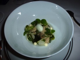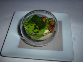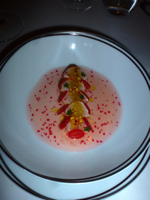 Belle table que cet » Amber » situé dans l’hôtel Landmark, en plein centre ville de Hong Kong, un restaurant qui ne désemplit pas et fait un beau succès avec la cuisine signature du chef Ekkebus. La carte est créative et très pointue, les plats que nous avons dégustés ce soir-là, dans le menu dégustation, sont les bestsellers du chef, ils font une belle place aux produits de la mer et aux saveurs françaises. La cuisine du chef est lisible, simple d’approche mais techniquement bien réalisée, loin des modes et des tendances moléculaires. Ici, la cuisine a de l’esprit, du goût et du corps, pas besoin de déstructurer pour marquer les palais, les bons produits font l’essentiel du chemin.