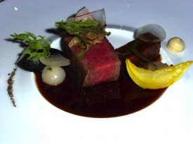 Bœuf Wagyu aux oignons des Cévennes et oignons câpres.