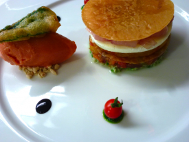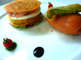 Le mille-feuille croquant de tomates de pays en déclinaison,
