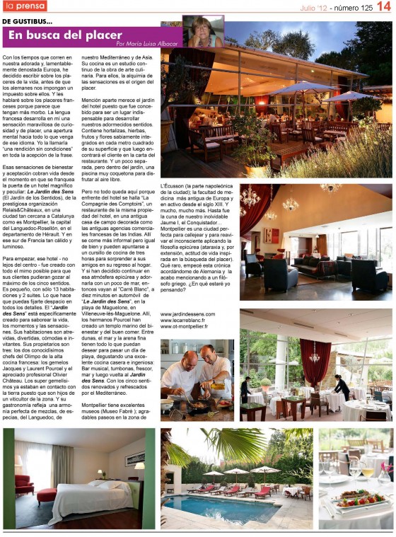 Le Jardin des Sens à l’honneur dans la presse espagnole !