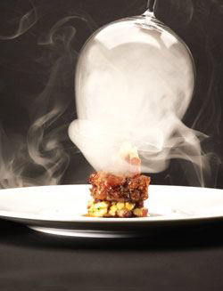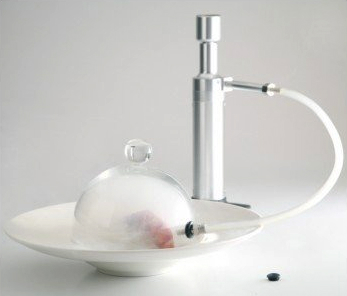 Le fumoir a intégré les cuisines des grands chefs bien avant que le chef Ferran Adrià commença à faire entrer le » fumé » en cuisine, mais aussi la fumée dans les salles de restaurant. Auparavant, les grands chefs se limitaient à fumer leurs poissons, quelques viandes, qu’ils allaient intégrer dans leurs recettes, le » poisson fumé maison » a eu ses heures de gloire. Mais le chef Adrià réfléchit à servir certains plats qui avaient le goût de » fumé « , mais aussi le parfum et la fumée qui l’accompagne, c’est ainsi que l’on vit arriver sur certaines tables, de grandes cloches en verre enfermant une épaisse fumée qui cachait le mets. Le maître de salle soulevait la cloche d’où s’échappaient les parfums de bois fumé qui emplissaient les narines des clients, criant aussitôt au miracle et s’extasiant, en ramenant vers eux la fumée odorante, comme s’ils n’avaient jamais fait une grillade et pris dans la figure un retour de fumée.