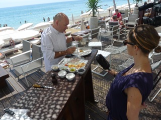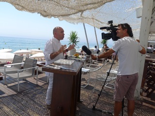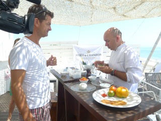 Et c’est à Carré Mer que nous avons retrouvé le journaliste Jérôme Régali de M6 Montpellier, pour tourner avec Jacques Pourcel une petite séquence « recette d »été » pour le journal de M6 qui sera diffusé la semaine prochaine.