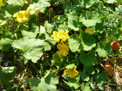 Un peu plus loin, droites comme un ‘i’, surmontées d’une fleur, ce sont les courgettes qui fièrement vous interpellent. Celles-ci vont certainement finir farcies dans vos assiettes, à moins que l’on ne laisse s’épaissir le légume avant qu’il ne rejoigne la ratatouille ou le gratin au basilic.