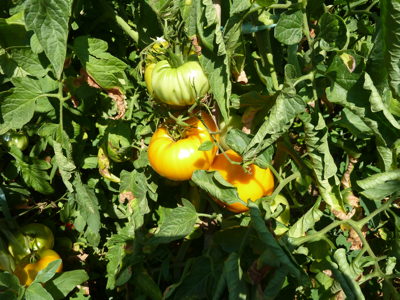 Incontournables tomates, cultivées en pleine terre, suspendues à des structures faites de roseaux, soigneusement accrochées, les plantes que l’on fait grimper laissent se déployer les grappes de tomates, de toutes tailles, de toutes formes, telles des sculptures elles se dorent au soleil… À chaque étape, la couleur vous indique la phase de mûrissement, vous ne résisterez pas à croquer la plus rouge à même la plante, un parfum inégalé se dégage.