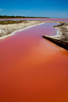 C’est un phénomène cyclique tout à fait naturel et observé qui est la conséquence de la présence dans les salins de la crevette Artemia salina et de l’algue Dunaliella salina. Quand la concentration de sel est très élevée – c’est le cas avant la récolte – la crevette meurt et l’algue prolifère donnant aux salins cette teinte si particulière. L’algue Dunaliella produit un pigment rouge qui absorbe l’énergie du soleil et réfléchit cette couleur.