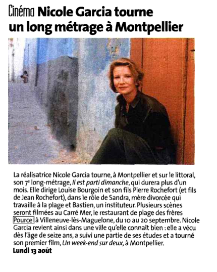 Pour tous les inconditionnels du restaurant plage des frères Pourcel » Carré Mer « , nous vous informons que le dernier service de l’été 2012 se déroulera le dimanche 9 septembre prochain au déjeuner. Le restaurant plage privée sera entièrement investi, dès le lendemain, par les équipes de production du tout nouveau film que tournera, en partie sur site, la réalisatrice Nicole Garcia.