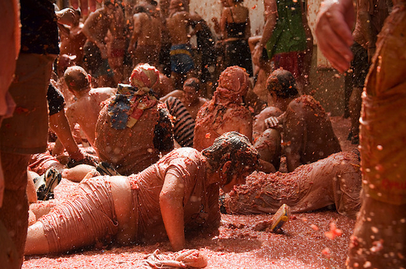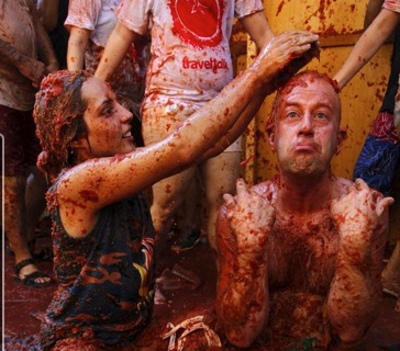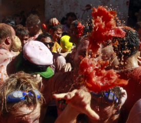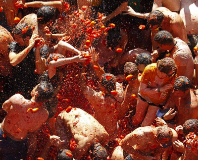 La Tomatina, c’est le festival annuel de la gastronomie, la petite bourgade de 9 000 habitants passe à 40 000 pour quelques jours, une seule raison les attire : quelques tonnes de tomates bien mûres.
