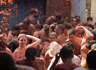 C’est fin août que tout se passe… Tout commence par un jambon espagnol accroché à un mât de bois graissé de plusieurs mètres, qu’il faut atteindre et décrocher. Une fois décroché cela déclenche une bataille de tomates fraîches. La seule règle c’est de prendre le soin d’écraser les tomates avant de le jeter sur quelqu’un d’autre (pour préserver la sécurité).