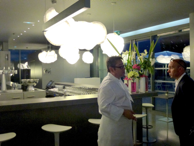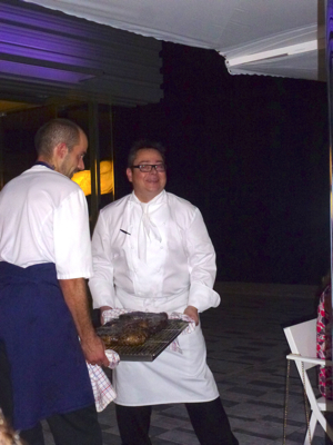 Le chef, très présent en salle, fit une apparition sur la terrasse pour présenter aux invités les côtes de bœuf. On a pu apprécier le finesse de cette viande de Bavière sélectionnée et cuisinée par Pascal Sanchez.