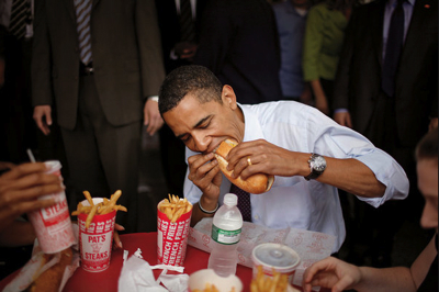En 2012, même » bien manger » est devenu un argument de campagne électorale. Les Premières dames se qualifient en réalisant des cupcakes, en cultivant leur jardin potager, tandis que ces messieurs fréquentent cocktails chics, barbecues et cornets de glace.