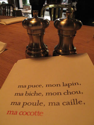 Ma puce, Mon Lapin, Ma biche, Mon Chou, Ma poule, Ma Caille… Ma Cocotte