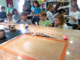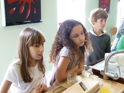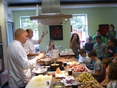 Pas besoin de produits compliqués pour passionner les enfants, quelques pommes de terre et le tour de main de nos chefs jumeaux. Les enfants en classe en CM2 venaient de l’école Sainte-Odile à Montpellier.