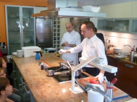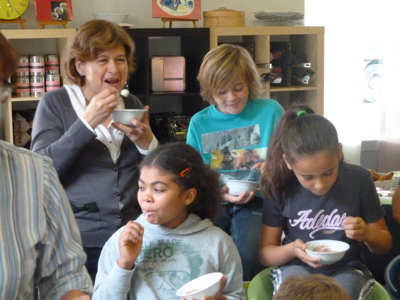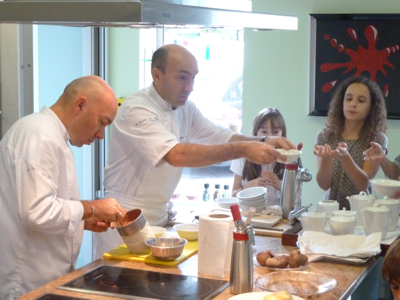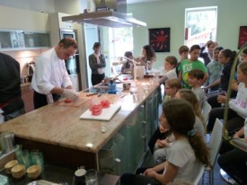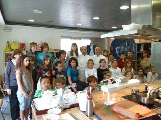 Ce jeudi matin, à Montpellier, l’Atelier de cuisine des frères Pourcel, école de cuisine destinée aux non professionnels, était en effervescence. 26 enfants de 10 et 11 ans s’étaient donnés rendez-vous pour un cours de gourmandise et de découverte. Jacques & Laurent Pourcel leur avaient concocté deux heures de cours de cuisine et d’explications autour de produits simples que tous les enfants connaissent et consomment régulièrement.