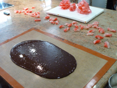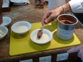 Une émulsion de pommes de terre à la vanille surmontée d’une glace fondante au chocolat maison, il n’en fallait pas plus pour créer le silence dans la classe de cuisine.