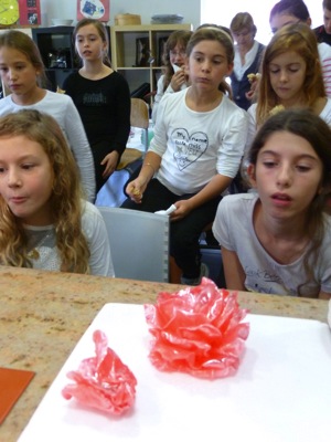 Réaliser des rubans de sucre et des roses, quelque chose de magique pour ces enfants qui comprennent à cette occasion ce qu’est le travail manuel.