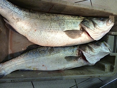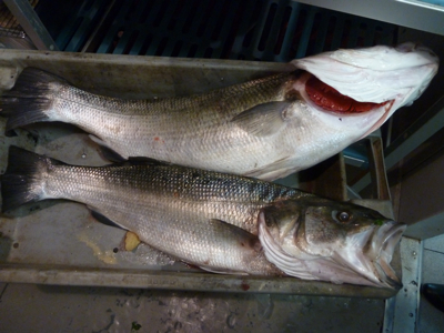 Deux pièces de loups qui n’iront pas se négocier à des prix démesurés sur le marché de Rungis. La meilleure façon de garder ces poissons qui viennent des côtes de notre région c’est de passer en direct avec les pêcheurs, ce qui évite de voir partir les plus belles pièces vers les mareyeurs et les intermédiaires.