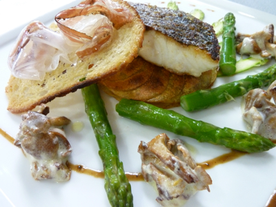 Girolles, pointes d’asperges, oignons doux, pommes de terre, lard de colonnata, les assiettes de poisson s’habillent de leurs garnitures, grillés à la plancha ou cuits à basse température, les filets de portions de poisson prennent déjà le chemin de la salle de restaurant, la fraîcheur du poisson c’est essentiel pour un plat de qualité… les clients du Jardin des Sens le savent bien et ne s’y trompent pas.