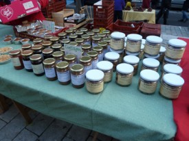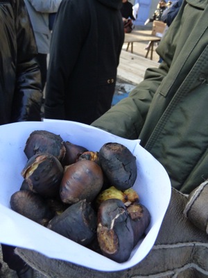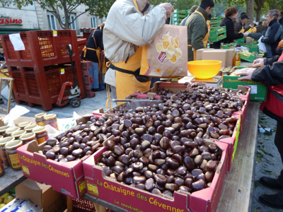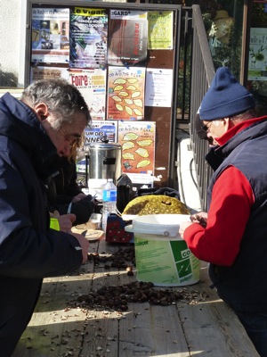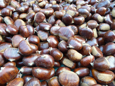 Bien sûr les châtaignes du coin qui s’étalent au devant des producteurs et artisans.
