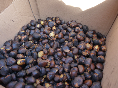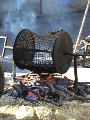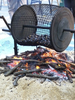 Une fois grillés, les marrons sont sortis du feu et directement mis en vente, il faut les servir encore brûlant, c’est là que c’est bon !
