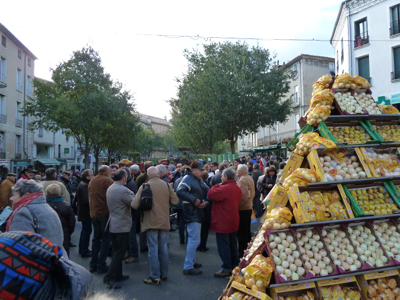 La ville du Vigan s’anime le temps de la foire, Pyramide géante d’oignons et de pommes, repas des producteurs, soupes et tartes, brasucades, animation avec une peña, où encore concours de recettes réservé aux apprentis cuisiniers du CFA de Nîmes, le thème : concevoir une entrée avec des pommes et un dessert à base d’oignons.