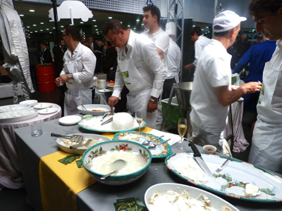 Pendant toutes ces réunions qui se sont succédé, les participants au congrès ont eu la chance d’avoir les chefs et propriétaires des Relais & Châteaux italiens qui sont intervenus à tour de rôle nous parler des produits qui leur tiennent à cœur. On a pu apprécier les interventions sur le vinaigre balsamique, le parmesan, le riz à risotto, la mozzarella, les biscuits Amoreto, les vins Gaya, la pizza… tout ceci nous a montré la diversité et la richesse du terroir italien.