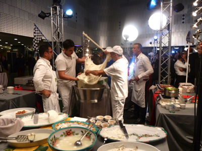 Très apprécié, le fameux risotto safrané à la feuille d’or du » Bocuse » italien Gualtiero Marchesi. Tout cela bien sûr accompagné de ténors italiens qui ont interprété les airs classiques des grands opéras transalpins.