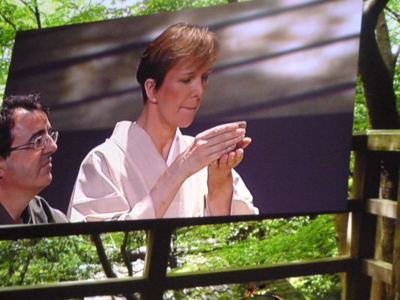 Cérémonie du thé pour Dominique Loiseau et Jaume Tàpies dans une vidéo diffusée.