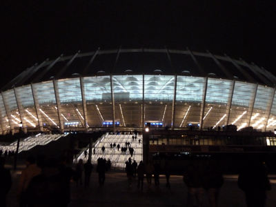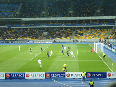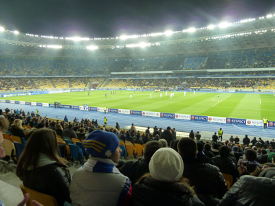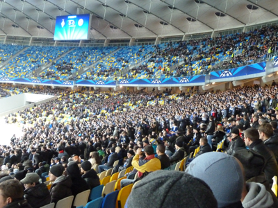 Quoi de mieux pour approcher la population et découvrir un pays que le soir même de l’arrivée assister au cœur de Kiev à un match de football. Et pas n’importe lequel puisque ce mercredi soir le Dynamo de Kiev ( l’équipe star de l’Ukraine ) rencontre le Paris Saint Germain ( PSG ) dans le cadre d’un match de Coupe d’Europe ( Champions league ). Deux intérêts pour moi qui ne suis pas un fan de foot, premièrement découvrir le stade Olympique de Kiev ( NSC Olimpiski ) où se sont déroulés des matchs de l’Euro 2012 et notamment la finale… et deuxième intérêt, et pas le moindre, voir jouer en direct le fameux et très cher Zlatan Ibrahimovic nouvelle recru du PSG, le joueur le plus payé du Championnat de France.