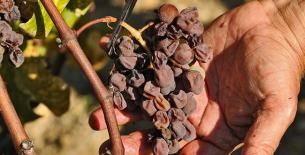 La pourriture (le botrytis) se déclenche en présence d’humidité et attaque la grappe par le bas. Si le beau temps s’installe, le champignon responsable de cette pourriture recouvre alors le fruit d’une pellicule, visuellement peu engageante, et pompe l’eau des raisins, d’où la concentration en sucre. Cinq à sept passages dans les vignes sont nécessaires pour ramasser, grain par grain, les baies atteintes de pourriture noble. Ce type de tri représente une tâche immense. Si les conditions ne sont pas parfaites, il faut envoyer une équipe de nettoyage pour que la pourriture que l’on nomme » grise » ne se propage pas. Le coût de cette main-d’œuvre très spécialisée, capable de distinguer une pourriture noble de l’ignoble, rend les vendanges particulièrement coûteuses.