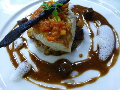 Le filet de turbot rôti, rougail de tomate comme un condiment,